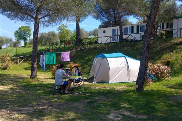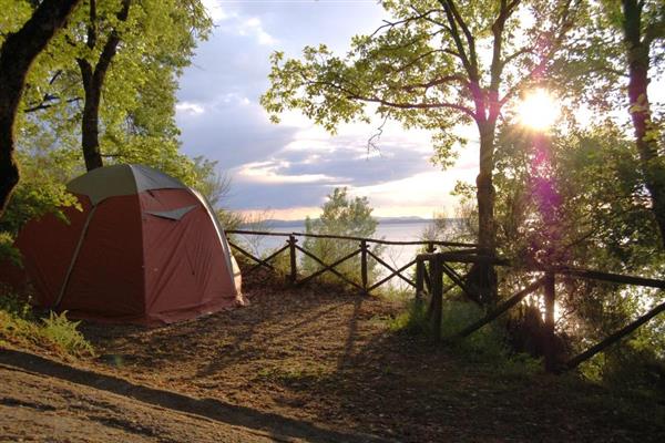Direkte ned til Trasimenersøen, i perfekt harmoni med den tætte bevoksning, der omgiver stedet. Camping feriecentret snor sig frem mellem træerne inde i en egetræsskov, hvor der er ryddet pladser i terrasser ned til søen, og en olivenlund, hvor der står murstenshuse, bungalows, hytter og husvogne, i en position med udsigt. Feriecentret har swimmingpool, restaurant, bar, supermarked, TV stue, vaskeri, legeplads til børnene, bordtennis, spillehal, cykeludlejning. Mulighed for ridning, tennis og golf. Badestrand. I Juli og august måned organiseres underholdning, babyclub, temafester, udflugter til øerne, udflugter på cykel, med bus til Rom - Assisi.