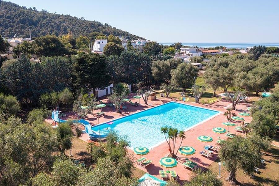 Am Fuße des eindrucksvollen Dorfes Peschici, in einer bezaubernden Umgebung zwischen alten Olivenbäumen und kristallklarem Meer, bietet es auf seinen 30 Hektar unzählige Campingplätze mit Lichtanschlüssen und 50 Villen mit allem Komfort, im Grünen