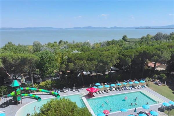 Am Ufer Trasimenischen Sees, zwischen den blühenden Hügeln der Toscana und dem grünen Umbrie liegt der Campingplatz Badiaccia. Er hat eine günstige Lage, die Ausflüge zu den wichtigsten Orten von archäologischer und kultureller Bedeutung erlauben (Florenz, Siena, Assisi, Perugia sind nur wenige Kilometer entfernt). Es ist auch ein idealer Ort für diejenigen, die im Urlaub Ruhe und Erholung in familiärer und unterhaltsamer Umgebung suchen. Aufmerksames und qualifiziertes Personal betreut Sie und trägt dazu bei, daß Ihr Aufenthalt kostbar und unvergeßlich wird, mit hohem Komfort und Gratis-Service: Duschen mit Warmwasser, Privatstrand, zwei Schwimmbäder, Tennisplatz, Volleyball, Fußball, Basketball, Minigolf, Boccia, Spielpark, Fernsehraum, Animations-Team, das Ihnen Aufführungen, Wettbewerbe, Babyclub, Tanzabende, ...und viel Fröhlichkeit bietet. Bar und Eisdiele, Kleinmarkt mit Basar, Pizzeria und Restaurant bilden einen modernen Punkt des Gaststättenwesens. Es besteht die Möglichkeit, Bungalows und Wohnwagen zu mieten.