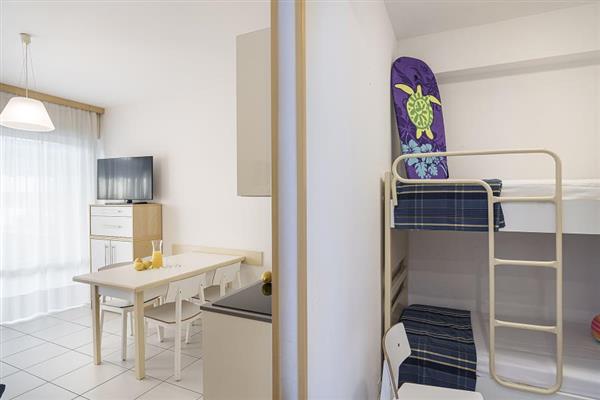 BeschreibungAlle Services eines 5-Sterne-Feriendorfes und die Ruhe eines Urlaubs am Meer: Isaresidence mit seinen 160 Ferienwohnungen in Isolaverde di Chioggia, zwischen der venezianischen Lagune und dem Naturpark des Po-Deltas, in einer natürlichen Umgebung, die zum UNESCO-Weltkulturerbe gehört.