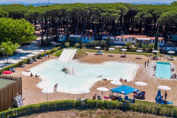 DescriptionPineta sul Mare Camping Village: 45.000 Sqm of pure nature, close to the sea and the charming old town centre of Cesenatico, famous for its Leonardo-designed port harbour. The pitches, the mobile homes and the cottage immersed in the beautiful pine forest guarantee peaceful holidays, far from noise and hectic pace of life, completely in touch with nature. Attraction of the village is the water park, ready to welcome guests of all ages in its lagoon with water slide, pools of varying depths, fountains, water games and many other amenities to be discovered. For the comfort of our guests: pool bar, private beach (for a fee) just 500 Mt far away, reception 24h, coin-operated washing machines and tumble dryers, free Wi-Fi and the numerous facilities that are available for our guests, at Cesenatico Camping Village, which is a short distance away. Being on board the fun little shuttle train will be fun for the littlest ones, moving between one campsite and another with the complete freedom to take advantage of all of Camping Cesenatico’s facilities. Our team awaits you for a summer of relaxation and fun!