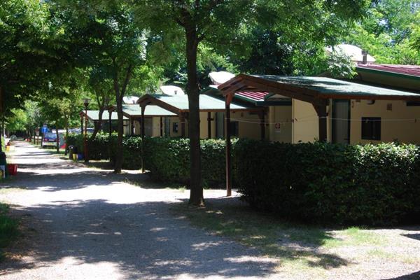 Position: located in the middle of a natural park along the scenic route linking Pesaro (7 Km.) to Gabicce (10 Km.), and surrounded by greenery. 100 m. above the sea, a pathway leads down to the beach below. The water here is particularly clear and ideal for underwater fishing. Ideal for those wishing to spend a relaxing and quiet holiday in a locality of uncontaminated beauty. At the disposal of guests, the camping site provides: bar, pizzeria, snack bar, convenience store, TV room, refrigerator service, laundry, safe and Bungalows. Sport and relax: free swimming pool for adults and children, solarium. Entertainment: ping-pong, games room, lawn billiards, polivalent court, children’s playground. Horse-riding and golf facilities nearby at extra charge. Recommended for everyone, including families with children and tourists on bike. Animals are welcome. The Campsite is provided with wide and comfortable bungalows, fully furnished and equipped, with all the facilities to offer you a pleasant and comfortable stay. In the bungalows there are: double room, room with single beds, bathroom with shower, living room equipped with crockery, refrigerator,and double bed-settee. The bungalows have air conditioning and heating. The bungalow have air conditioning and TV-socket outlet. Moreover you may dispose over a veranda with chair and table to eat outside and to spend lovely evenings.