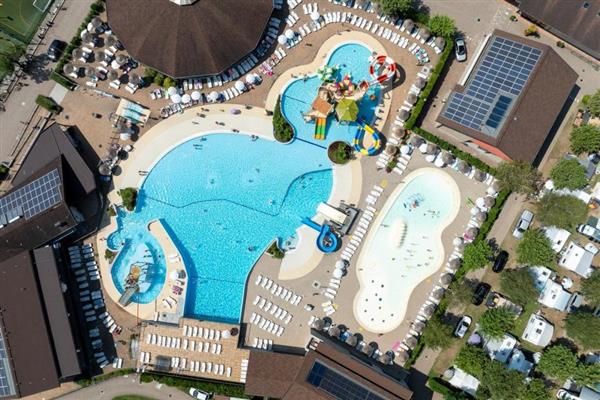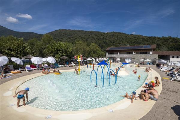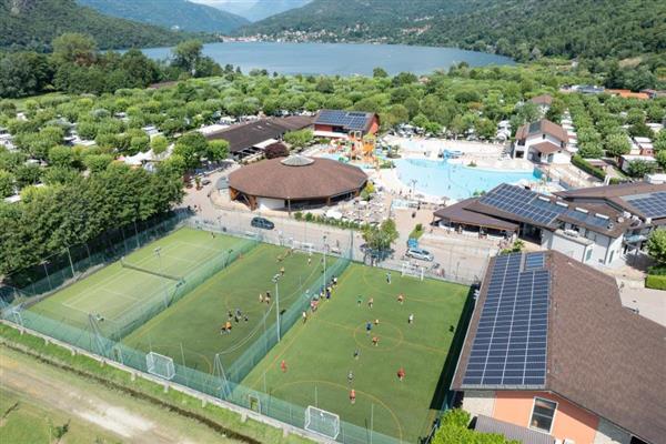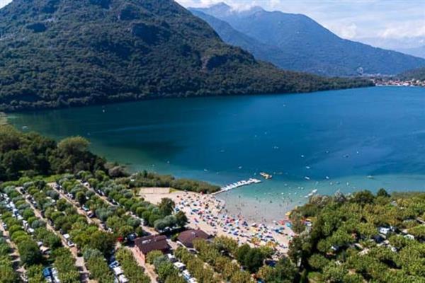 100,000 sq. m. Open from 11/04 to 29/09 . The campground is located on Lake Mergozzo, a small lake with clear, very clean water (1st in Europe). Pool of 1,200 sq m (18/04/28/09) with whirlpool, rapid river, slides and wave pool; free sunbeds and umbrellas. Its long sandy beach makes it especially suitable for children. Camper service, Camper Clean, car wash, laundry, baby room. 289 Housing Units ( 270 maxi caravans including 2 handicapped accessible and 19 apartments) and 328 Pitches. Bar with Tv-Sat, supermarket, restaurant-pizzeria, take-out meals, snack bar on the beach and pool, newspapers, Free Wi-Fi, international animation (18.04 - 28.09) and excursions. Playground, 1 tennis court and 2 artificial turf soccer fields, spinning, table tennis, canoe, pedal boat and bicycle rentals, fishing, Golf Continental Verbania and Lake Maggiore Bmx Park with special prices for our clients! New in 2022: Spray Park!