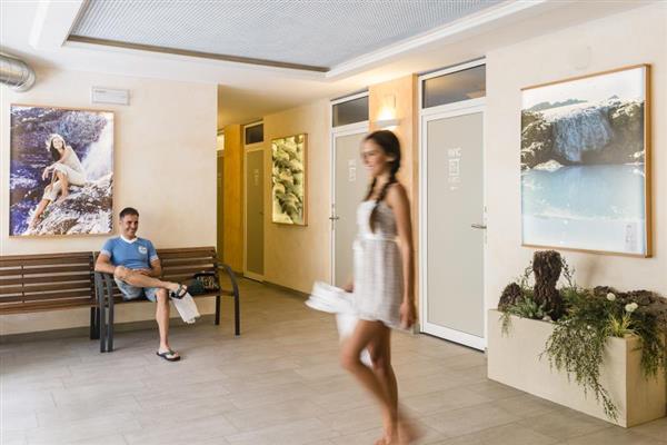 Coffee bar, breakfast, bread service, restaurant, pizzeria, terrace, kiosk, internet corner, youth room with satellite TV, table football, children's room, washing machines, tumble dryer, ironing board, disabled facilities, library, mineral exhibition, playground, children's entertainment (July / August) , ski and bicycle storage, gas, electricity.