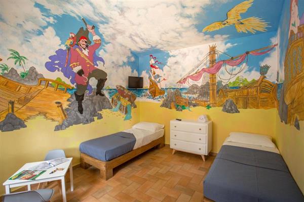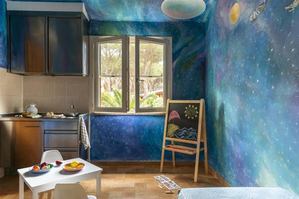 The Villini d'Autore, on the other hand, are magical places where going to sleep means continuing to play; entirely hand-painted, the little villas dedicated to the most creative families reflect the cheerfulness and imagination of the little ones!