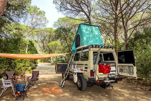 The Camping Maremma Sans Souci is a campsite in full nature right by the sea, 2 km from Castiglione della Pescaia, which can be reached by a convenient cycle path. Every single pitch is hedged, offering privacy. Some pitches are equipped with satellite connection. Dogs are allowed, only on the pitch and according to the campsite regulation. A short step from the seaside, the guests have at their disposal comfortable small houses: beautiful wooden cottages and the brand new mobile homes, called “maison”. All accommodations have private shower and toilet and are equipped with every comfort for a relaxing holiday in contact with nature. Cottages are perfect for those who love camping life but do not want to renounce to some comforts. Maison are roomy mobile homes, have two toilets and are equipped with TV and air conditioning. The campsite also offers a Glamping section, which includes the romantic Mini Lodge Tents (share restrooms inside the camping), Safari and Country Lodge Tents (brand new 2018) for a maximum of 5 people with private services and a furnished kitchen. Inside the Campsite, there is a Surf School, a good restaurant, BAR, Minimarket, Bazar with international press, Tobacco and smoke shop, beach goods. The Camping also offers other services like mini club, daily entertainment programs and Open air Cinema – Free Wi-Fi all over the campsite, a camper stationary area, washing machines and dryers. Bike rental and bike-tours.