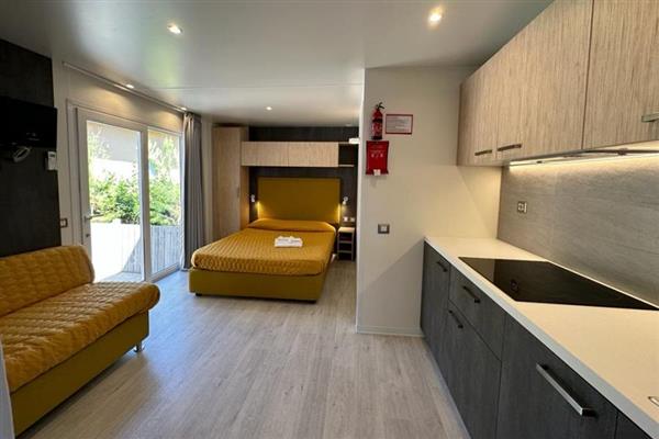Il campeggio propone un’esperienza unica per le vacanze all’aria aperta: la leggerezza della tenda con il comfort dell'appartamento….Le nostre Safari Lodge Tent e Green Lodge Tent sono la sistemazione ideale per un soggiorno a stretto contatto con la natura, senza rinunciare al comfort! Sono adatte sia a famiglie che a ragazzi giovani e sono dotate di pareti interne e pavimentazione in legno, con 2 camere da letto (una matrimoniale e una con 1 letto singolo e 1 a castello), cucina arredata con piano cottura, lavello e frigorifero; servizi igienici con wc, lavabo e box doccia, una confortevole veranda esterna.